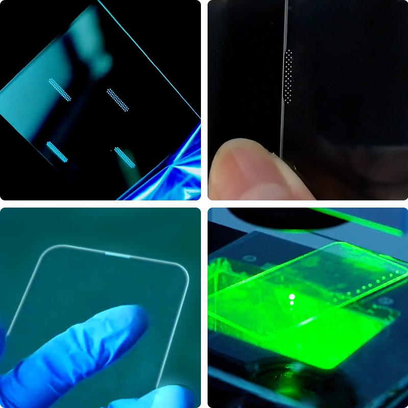 手機(jī)玻璃微孔激光打孔機(jī)是一種采用激光束在手機(jī)玻璃表面進(jìn)行打孔的設(shè)備,主要體現(xiàn)在手機(jī)屏幕玻璃蓋板聽(tīng)筒陣列孔和攝像頭玻璃保護(hù)蓋板打孔上。這些元器件的尺寸和位置精度直接影響到手機(jī)屏幕的整體質(zhì)量和使用體驗(yàn),因此,采用激光在手機(jī)玻璃上打孔具有極高的意義。